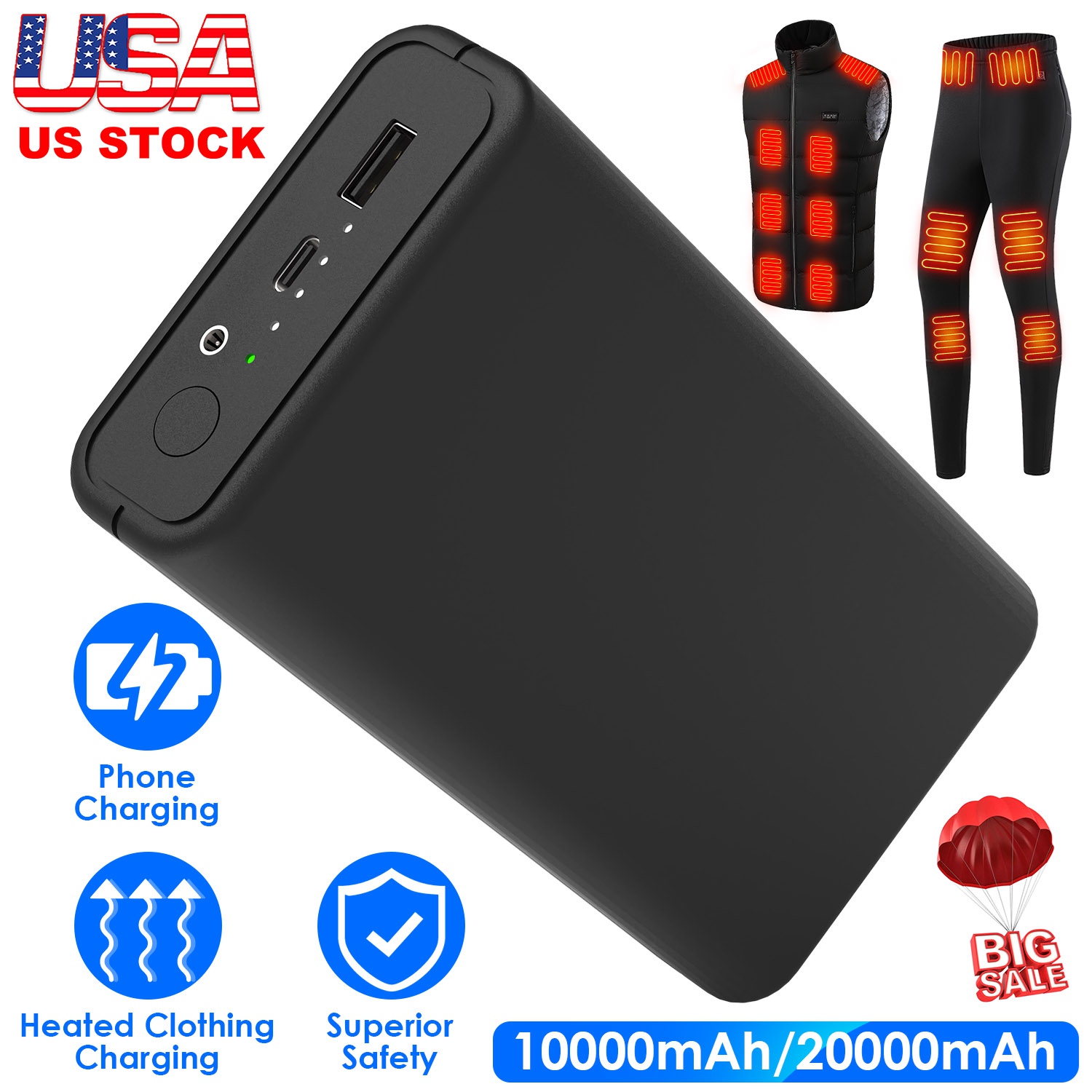 20000mAh 5V 2A Power Bank for Heated Jackets Vests Pants Gloves Scarves DC 7.4V 2A Heated Clothing Replacement Battery Pack for Men Women