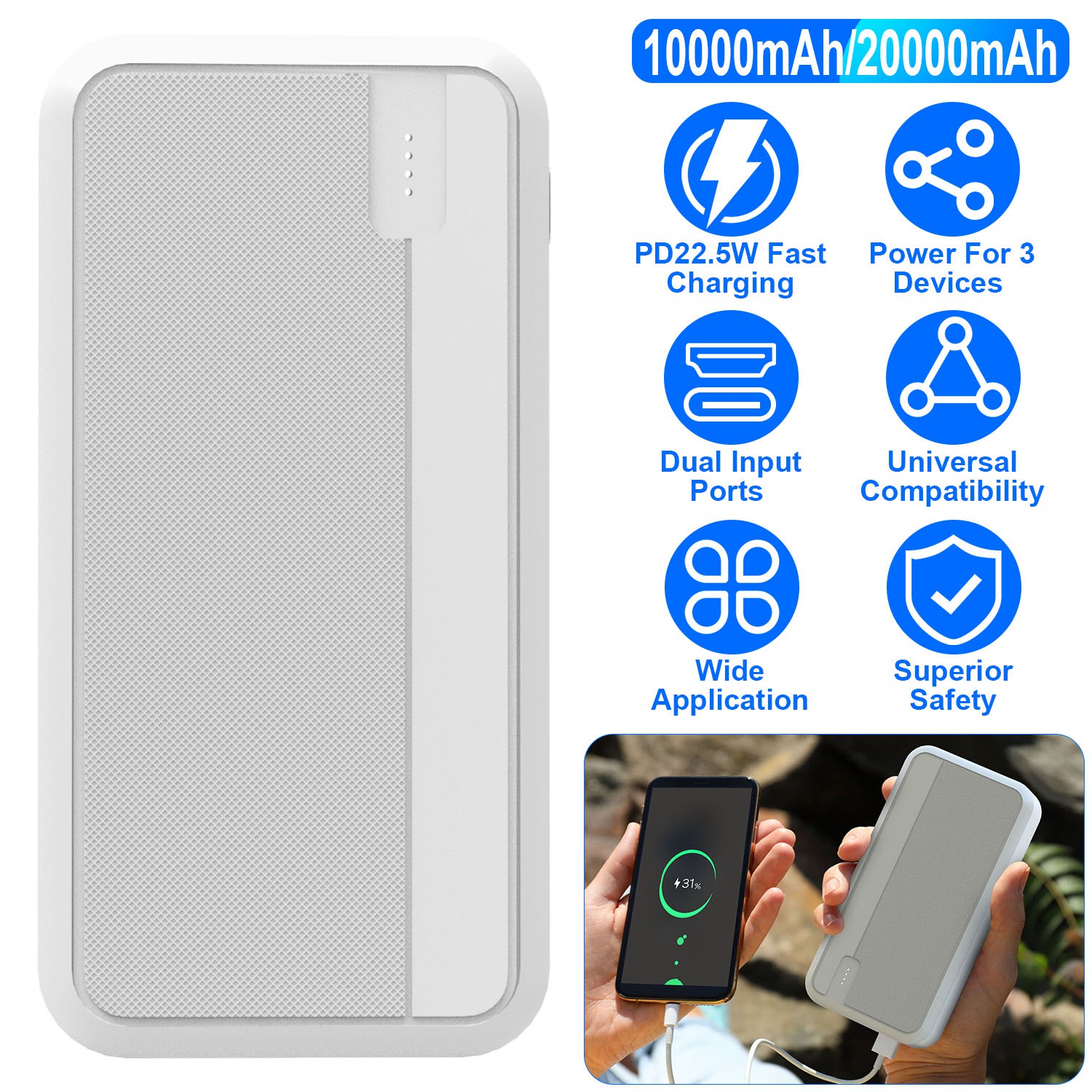 Battery Capacity Options: 10000mAh; 20000mAh