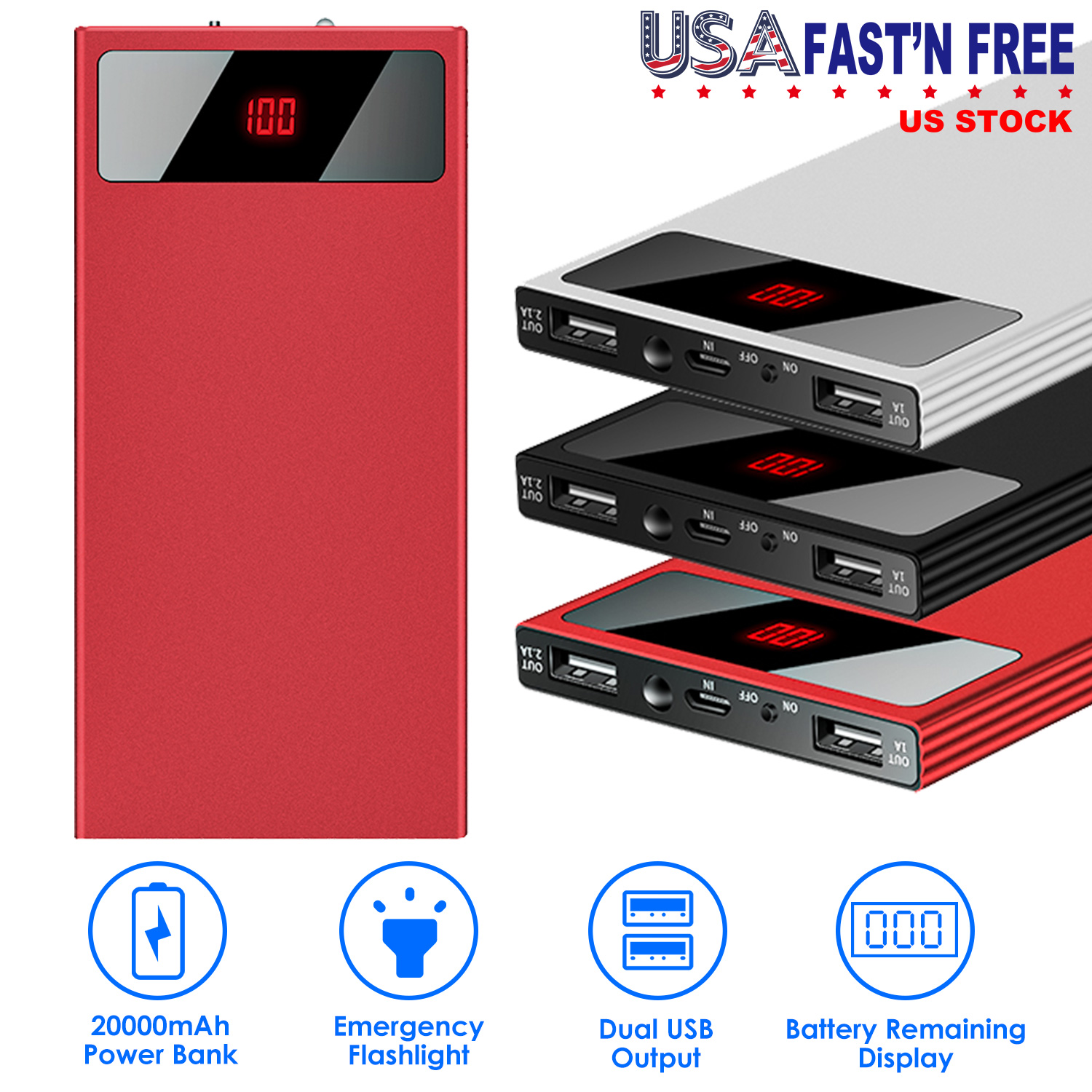 20000mAh Power Bank Ultra-thin External Battery Pack Phone Charger Dual USB Ports Flashlight Battery Remain Display