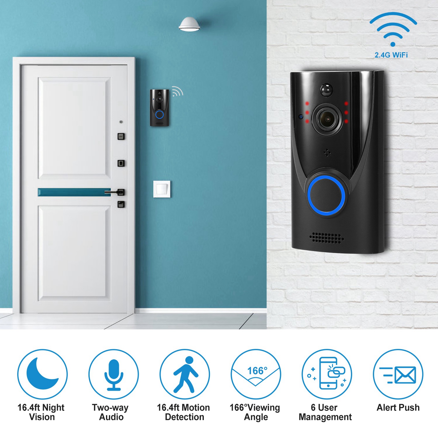Home > WiFi Video Doorbell Wireless Door Bell 720P HD WiFi Security Camera w/ Two-way Talk PIR Motion Detection IR Night Vision Home Security Camcorder Offic