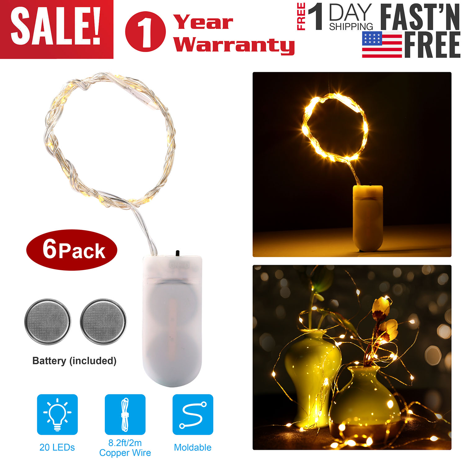6 Pack LED String Lights 6.56ft 20 LEDs Decor Light Battery Starry Fairy Lights Copper for DIY Costume Party Wedding Festival