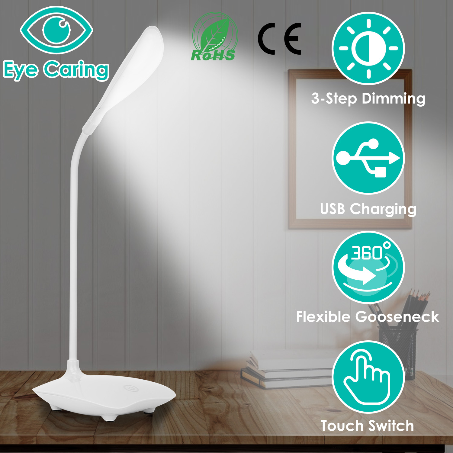 Home > Dimmable LED Desk Light Table Beside Reading Lamp Touch Sensor USB Rechargeable Table Lamp Flexible Gooseneck Book Night Light