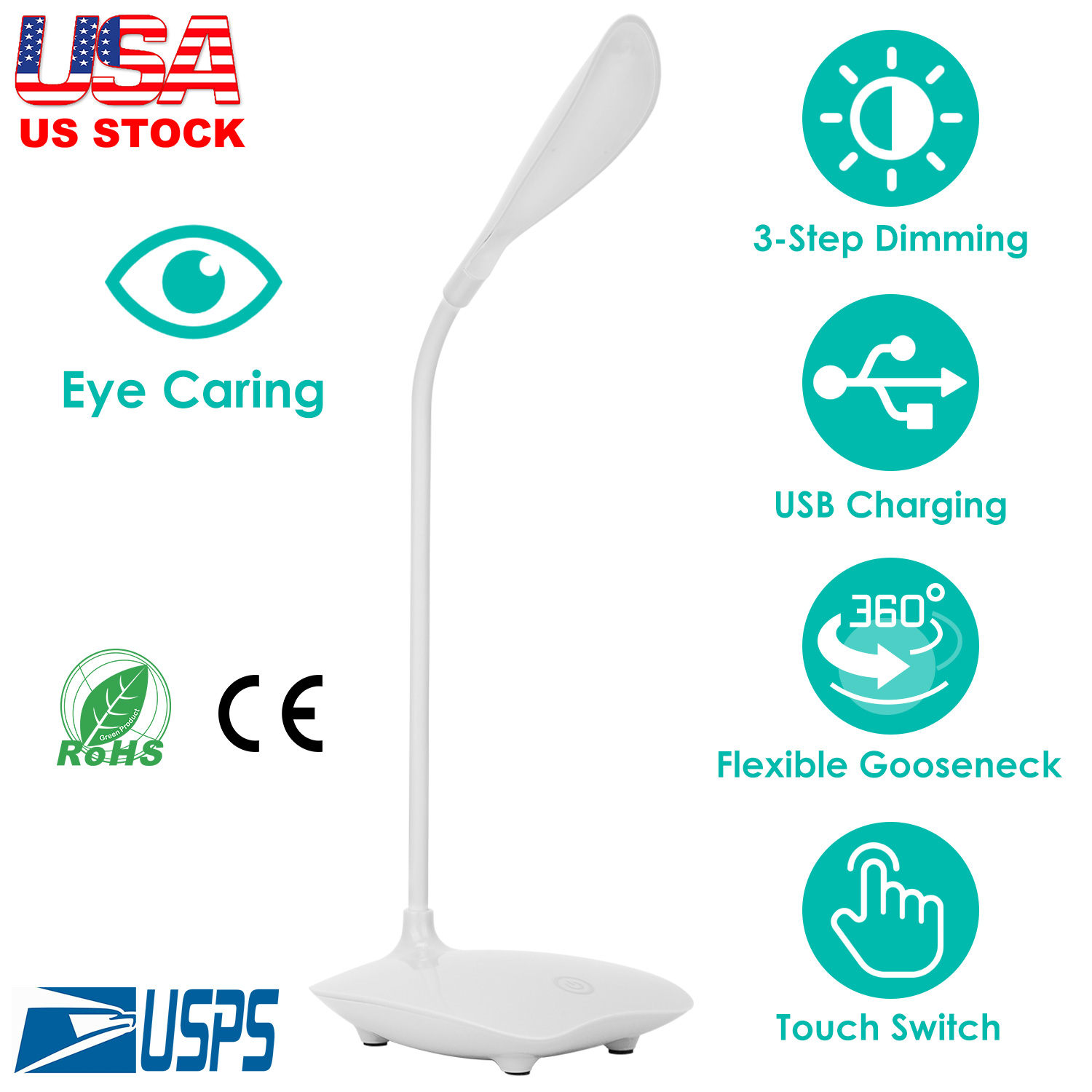Dimmable LED Desk Light Table Beside Reading Lamp Touch Sensor USB Rechargeable Table Lamp Flexible Gooseneck Book Night Light