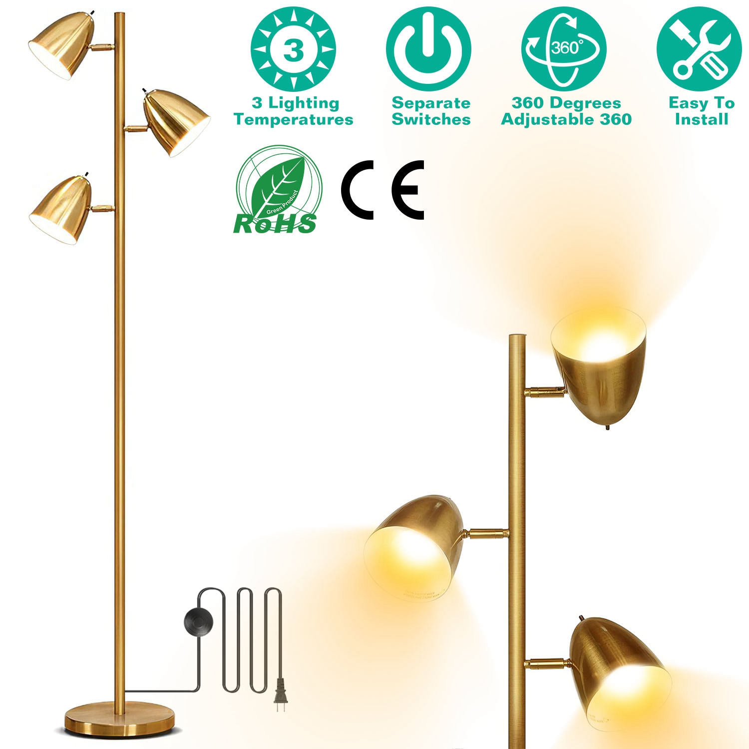 Home > Black Tree Standing Floor Lamp Metal 3 Color Temperature Reading LED Bulb Light 360 Degree Adjustable Individual Separate Switch Living Room Bedroom O