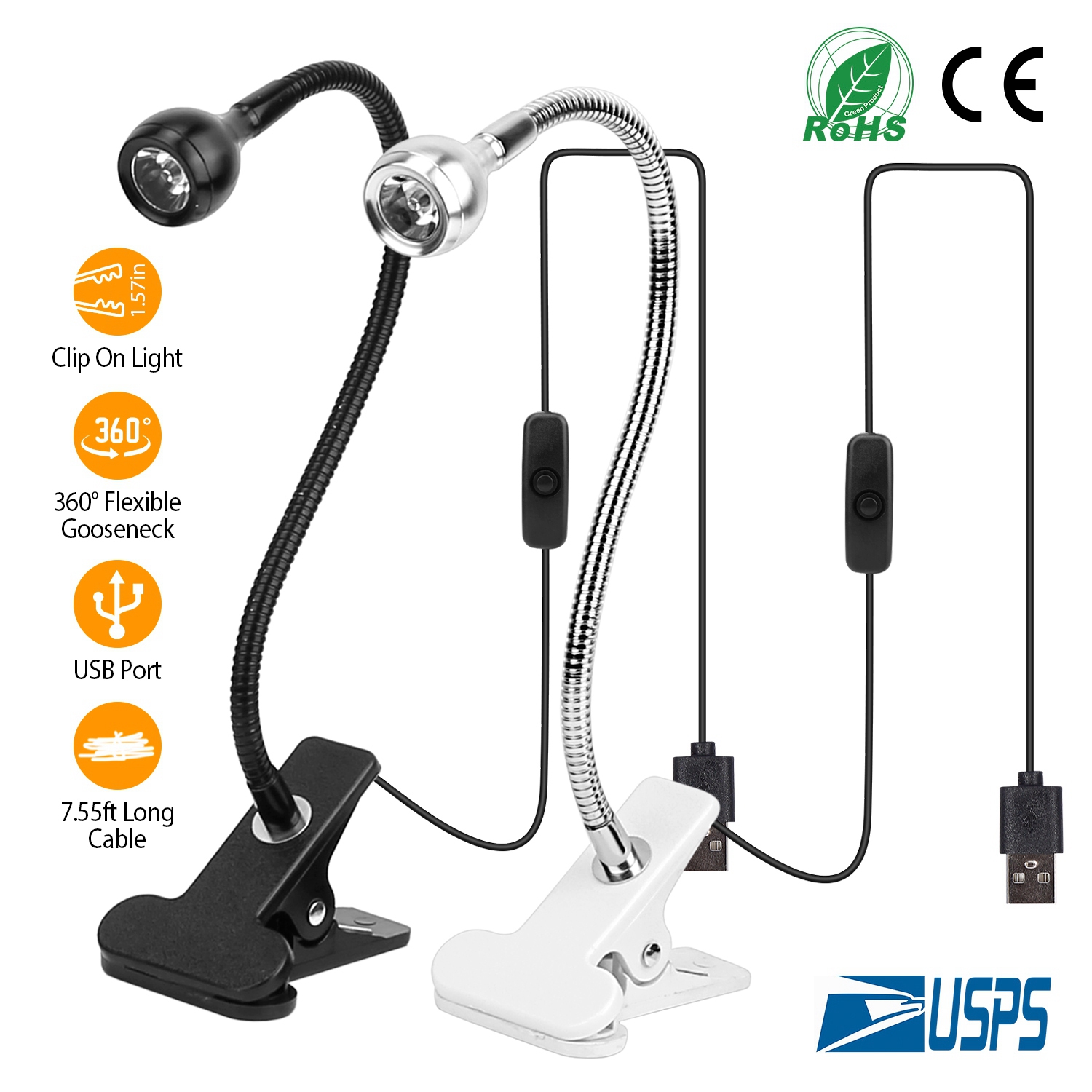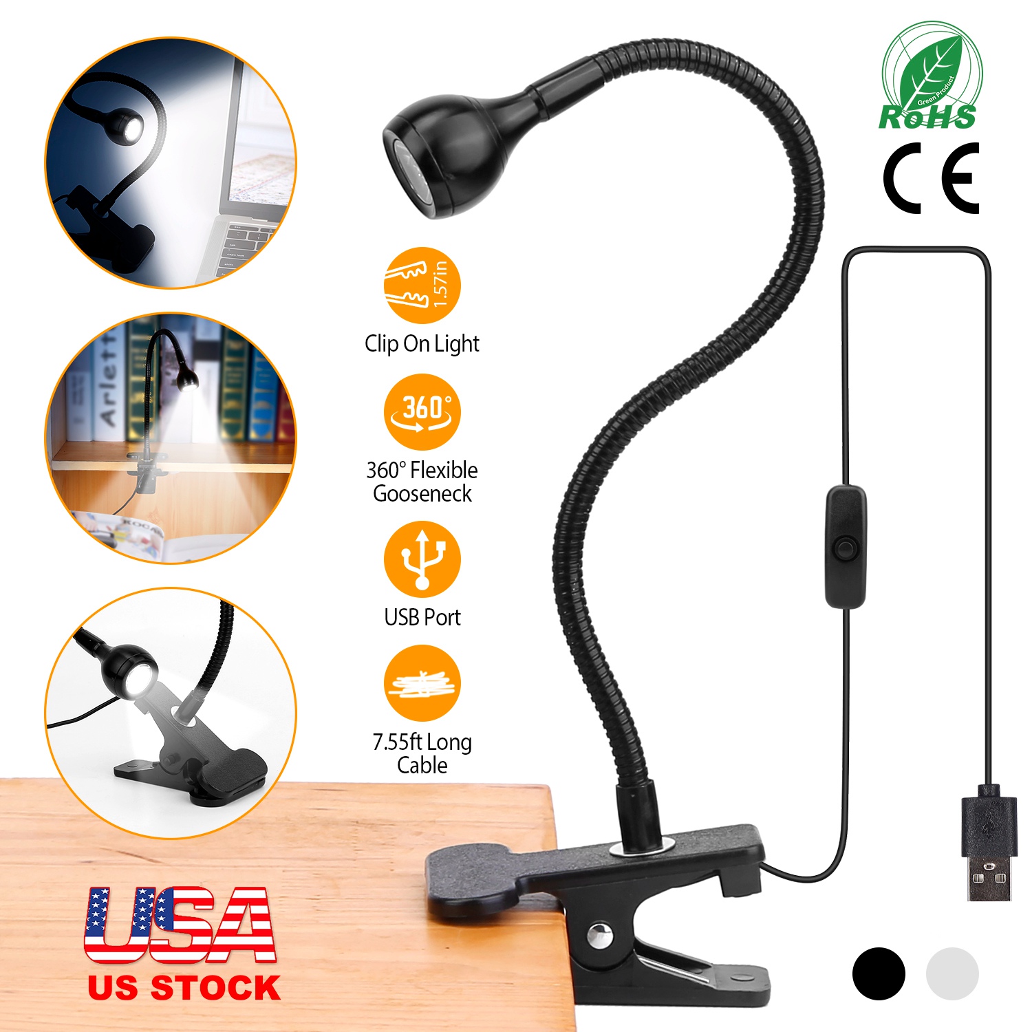Clip On Reading Light USB Desk Clamp Lamp Flexible Gooseneck Book Night Light For Bed Table Book Study Computer