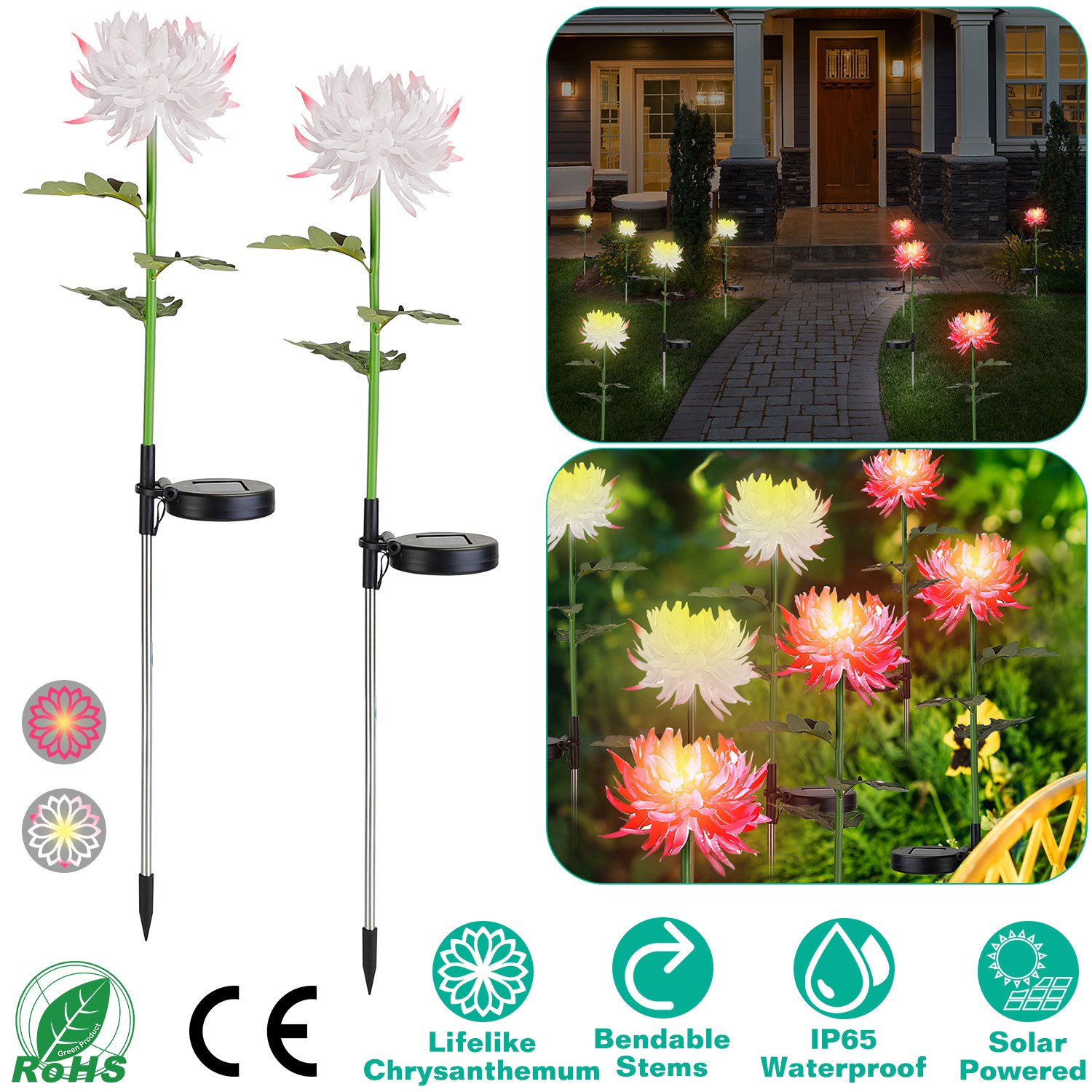 Home > 2 Packs Solar LED Chrysanthemum Lights Solar Powered Garden Flower Stake Lamp Waterproof Landscape Decorative Light for Garden Patio Yard