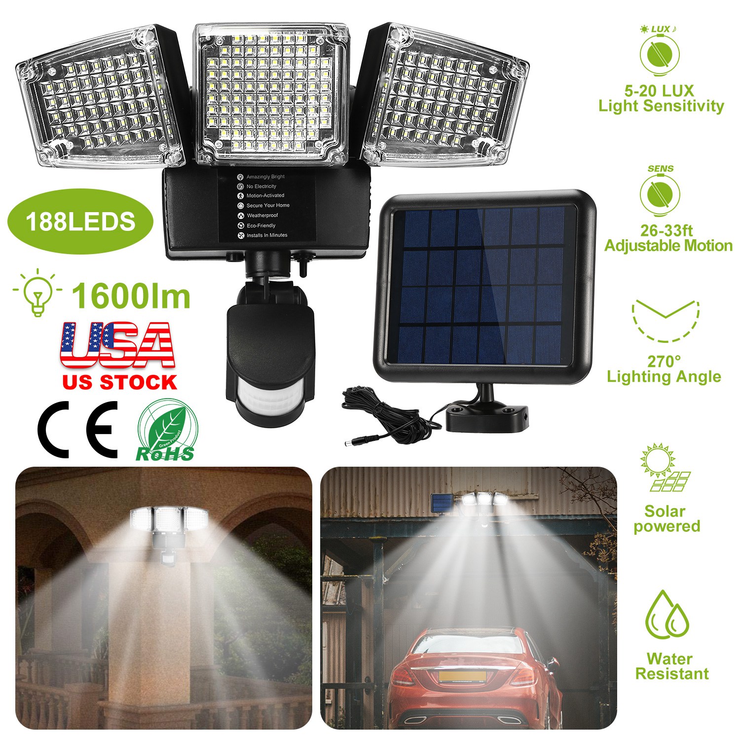 Home > Solar Lights Outdoor 188 LEDs 1600lm Solar Security Lights Motion Sensor Lights 270)ghting Angle Waterproof Dusk to Dawn Solar Wall Lights 360¯tat