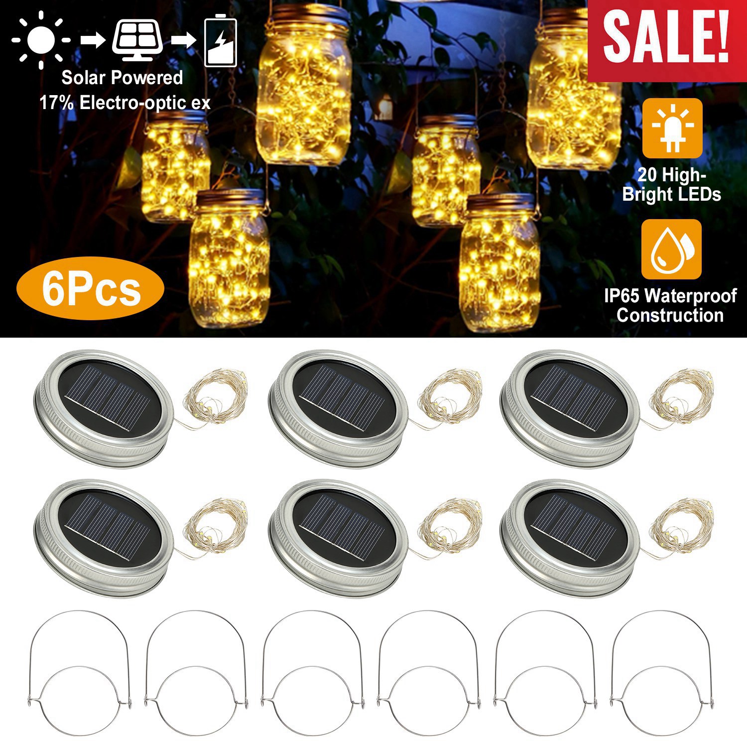 Home > 6 Pcs Solar Powered Mason Jar Lid Lights 20 LEDs Fairy String Lights Xmas Garden Decor