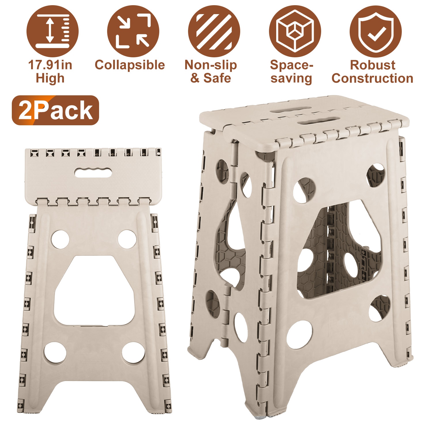2 Pack 17.91In High Step Stool Folding Stepping Stool Lightweight Plastic Step Stool with Handle Non-slip for Kitchen Bathroom