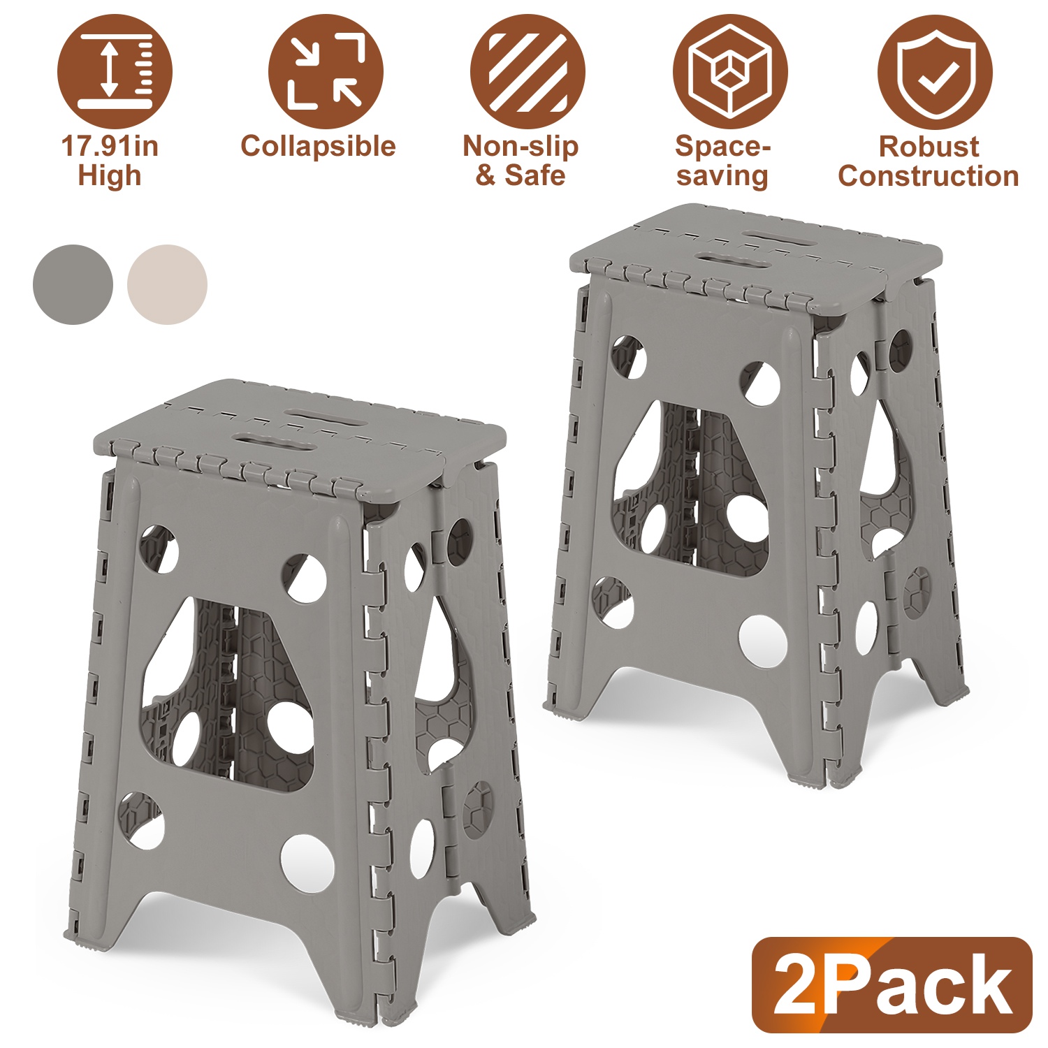 2 Pack 17.91In High Step Stool Folding Stepping Stool Lightweight Plastic Step Stool with Handle Non-slip for Kitchen Bathroom