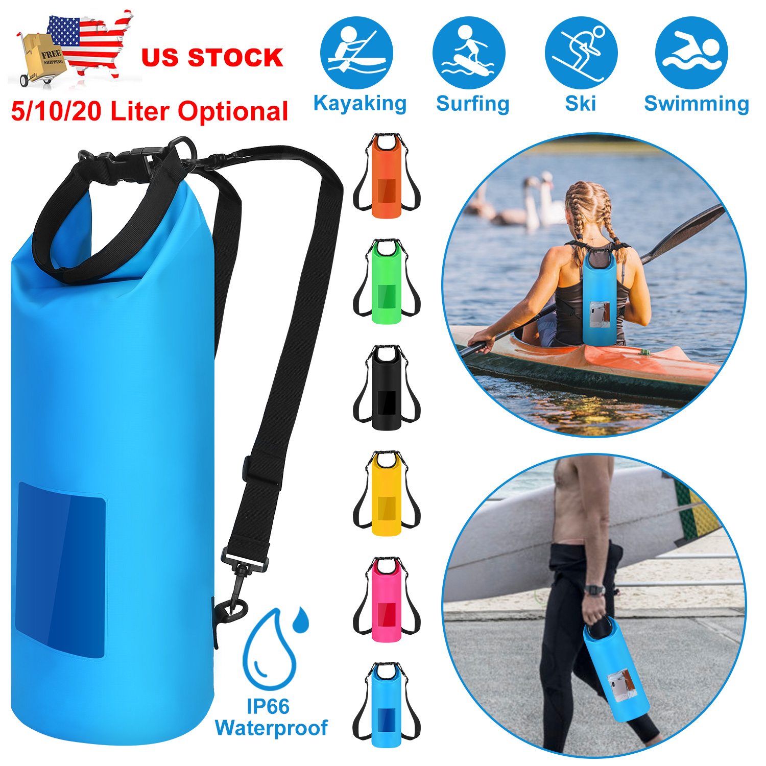 Home > Floating Waterproof Dry Bag Floating Dry Sacks with Observable Window 20L Roll Top Lightweight Dry Storage Bag for Kayaking Rafting Boating Swimming C