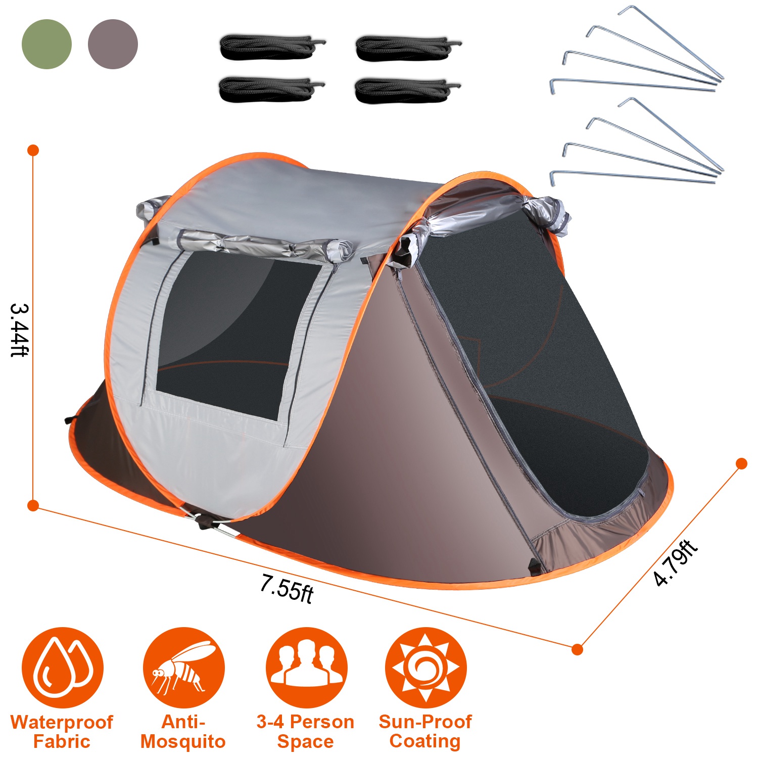 Home > 3-4 Person Pop Up Tent Automatic Setup Camping Tent Waterproof Instantåtup Tent with 2 Mosquito Net Windows Carrying Bag for Hiking Climbing Adventu