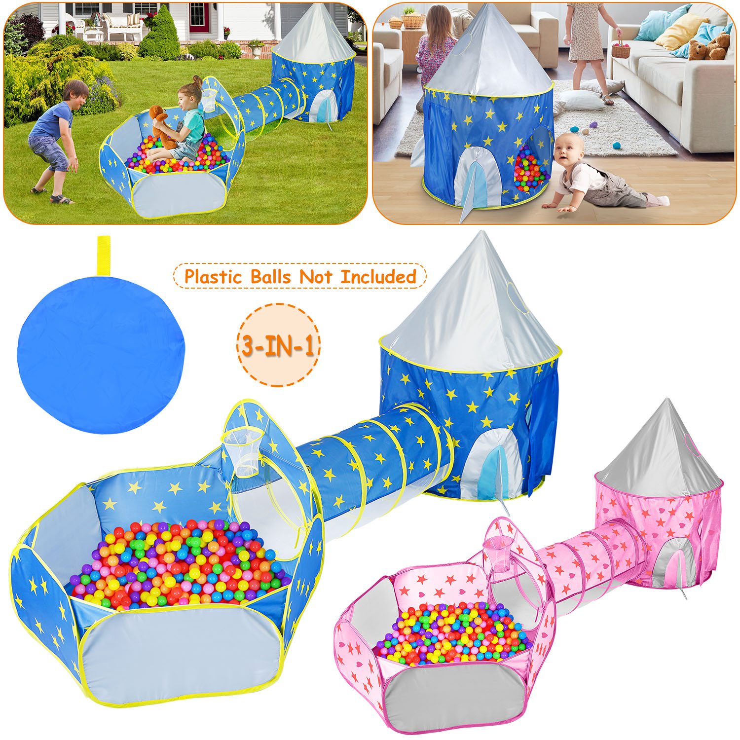 Home > 3 In 1 Child Crawl Tunnel Tent Kids Play Tent Ball Pit Set Foldable Children Play House Pop-up Kids Tent w/Storage Bag for Indoor Outdoor Travel Use