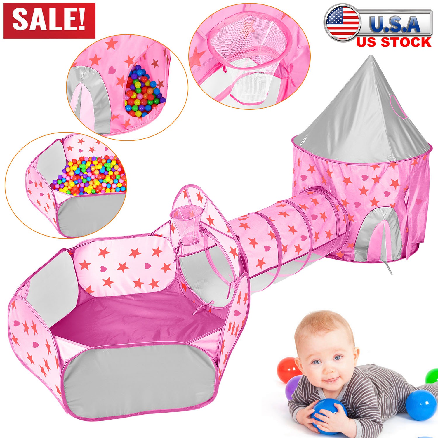Home > 3 In 1 Child Crawl Tunnel Tent Kids Play Tent Ball Pit Set Foldable Children Play House Pop-up Kids Tent w/Storage Bag for Indoor Outdoor Travel Use