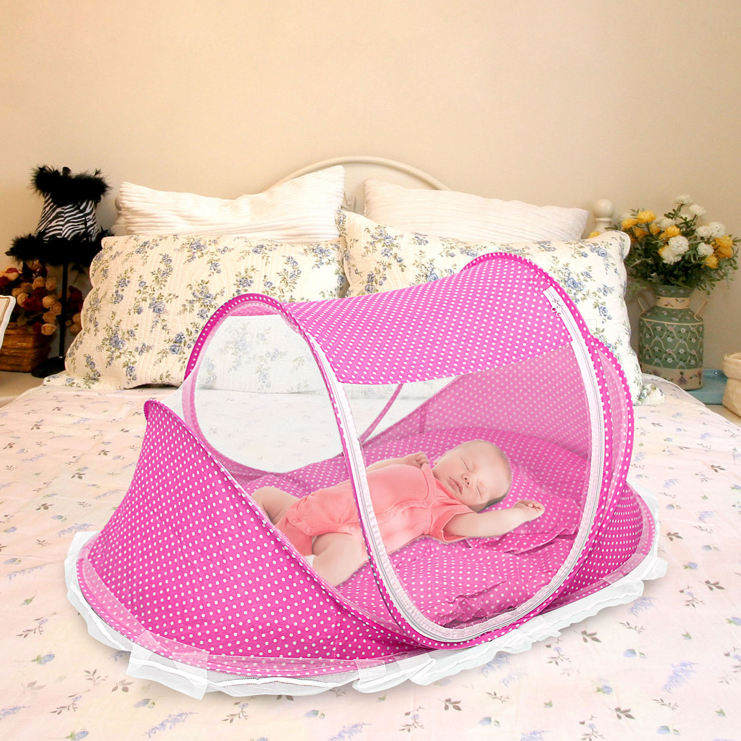 Home > Foldable Baby Travel Bed Portable Infant Mosquito Net Tent Crib Cradle w/ Pillow Mattress Music Box for 0-3 Kids