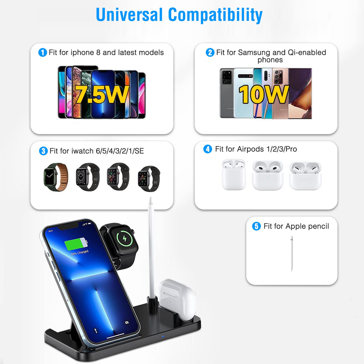 Home > 4 In 1 Wireless Charger Foldable Fast Charging Station Stand Dock Fit for iWatch Apple Pencil Airpod 1/2/3/Pro iPhone 13 12 11 Pro Samsung S22 S21 Qi-