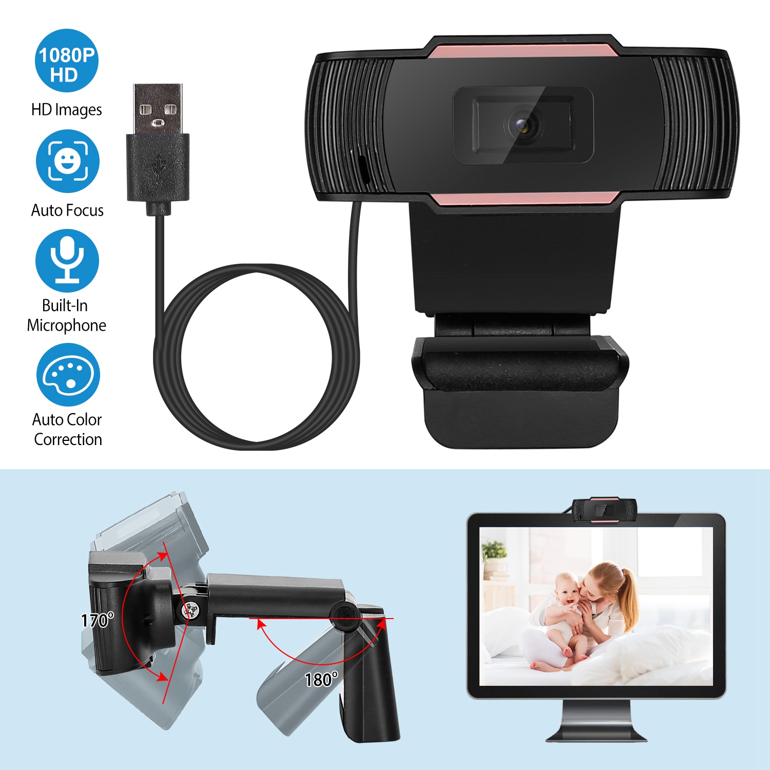 Home > 1080P USB Webcam Streaming USB Camera 170ertical Adjustment w/ Clip For PC Video Conferencing Gaming Facetime Broadcast