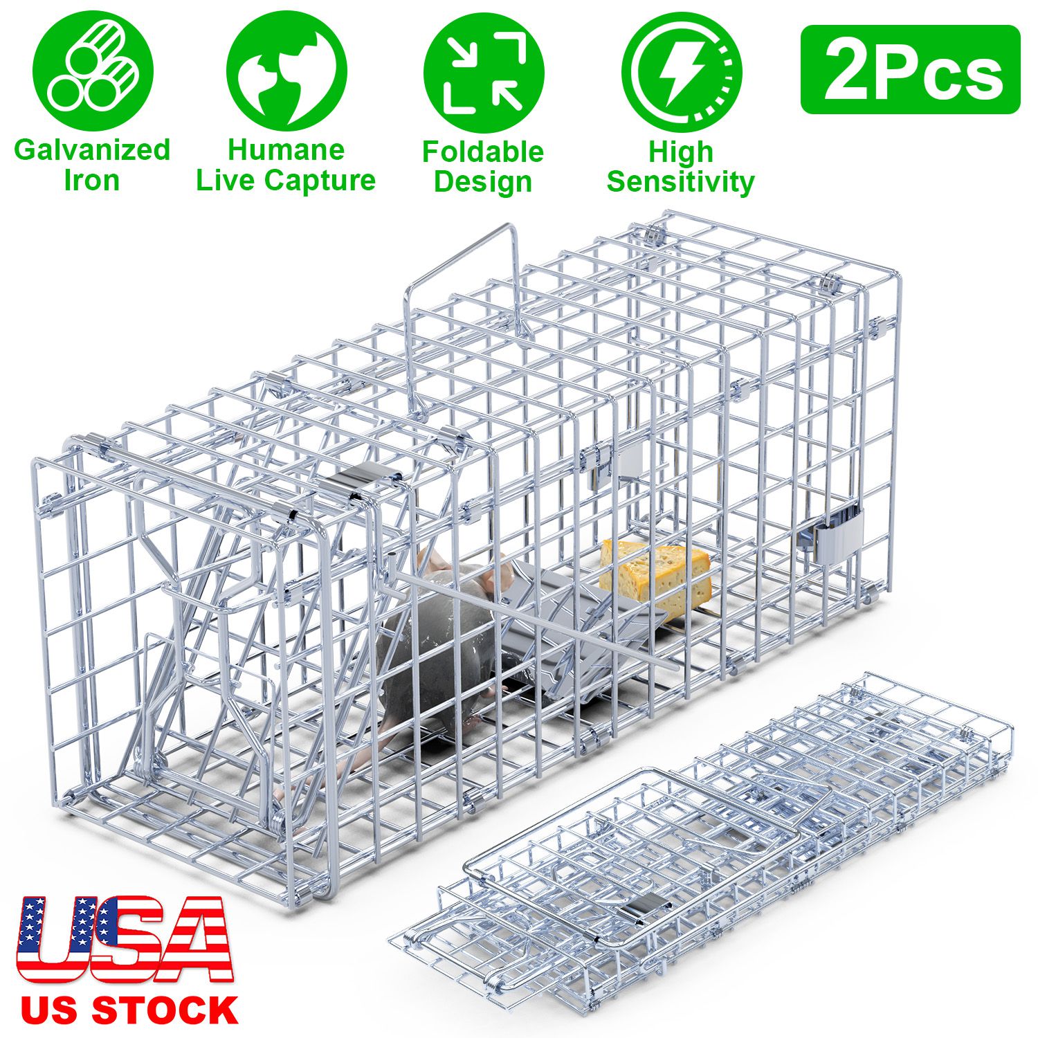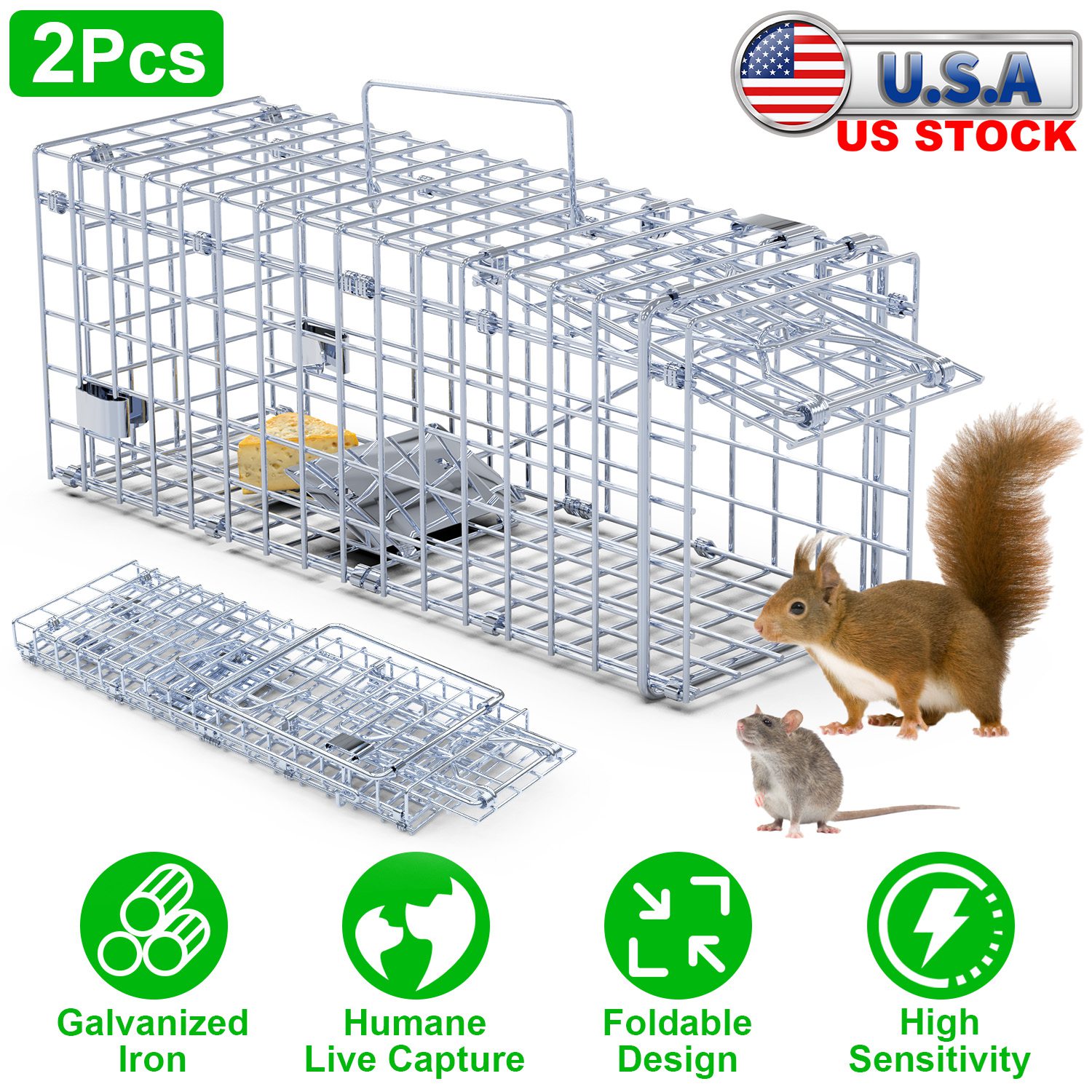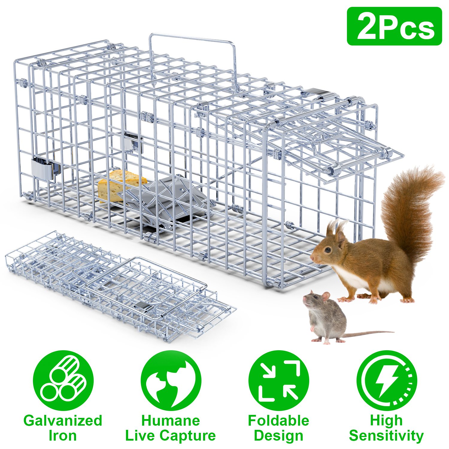 Home > 2Pcs Foldable Rat Trap Cage Humane Live Rodent Trap Cage Galvanized Iron Mice Mouse Control Bait Catch with Detachable L Shaped Rod For Kitchen Garden