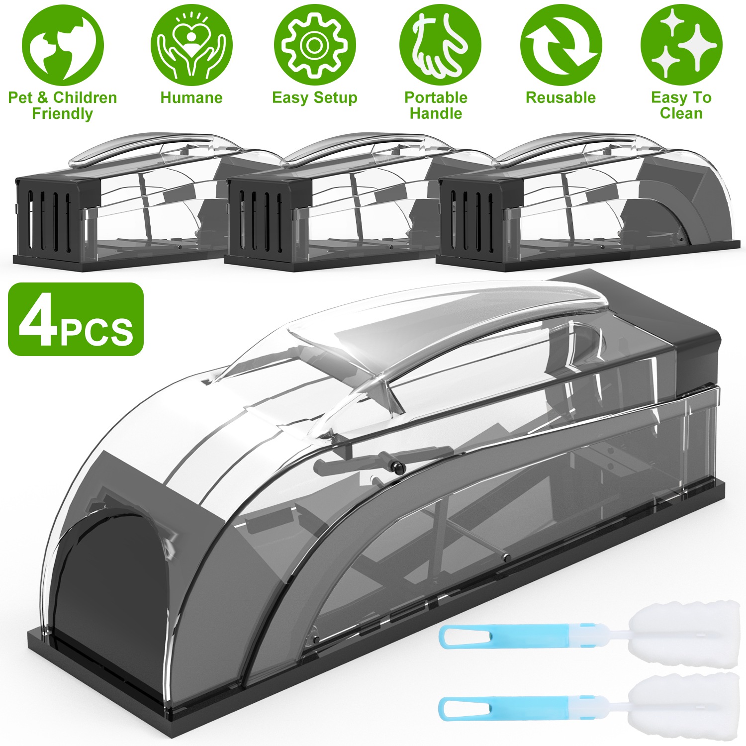 4Pcs Humane Live Mouse Trap Reusable Rat Rodent Trap Catch Release Cage with Top Handle Safe for Family Children Pets Easy Setup
