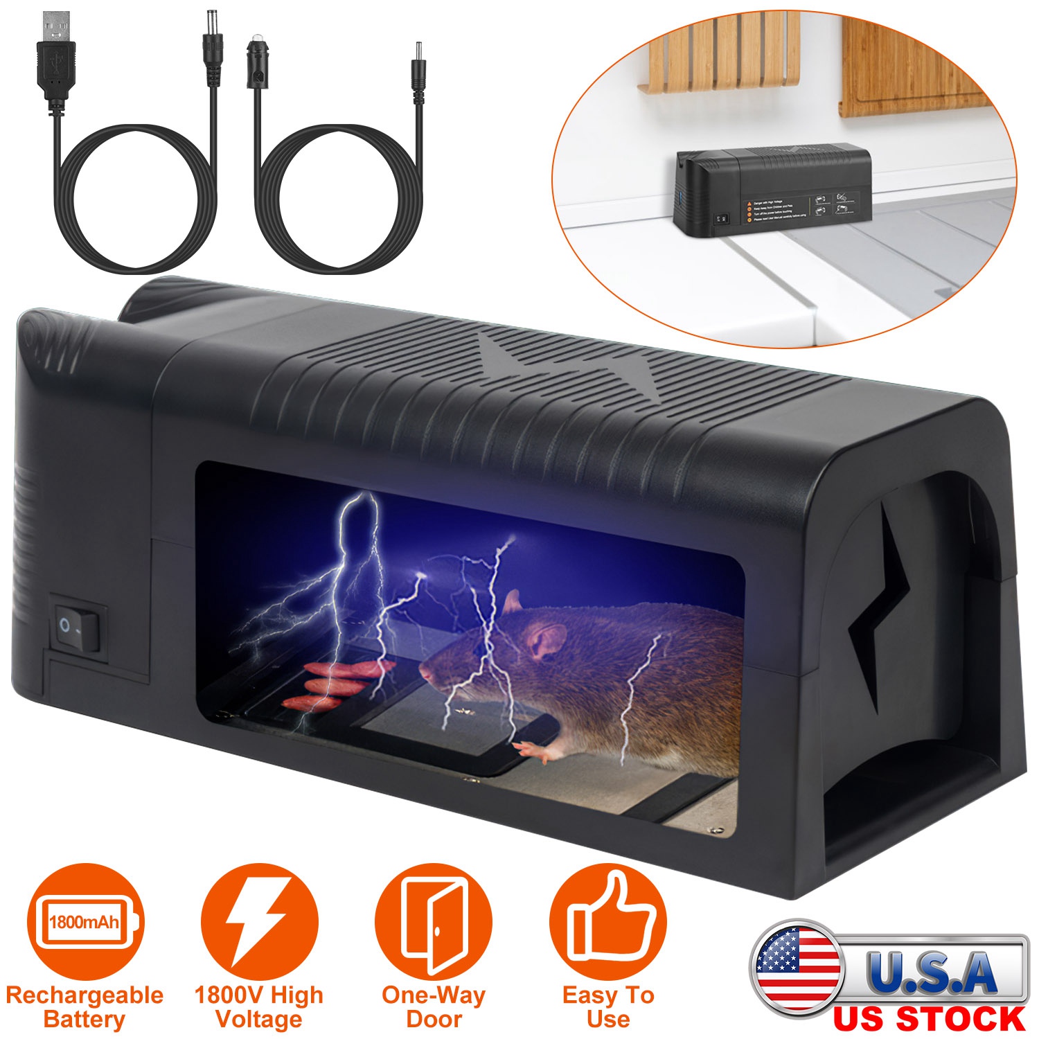 Home > Electric Rat Trap Reusable Mice Trap Rodent Zapper Indoor Pest Control Rechargeable Shock Mice Killer with 1800V High Voltage for Home