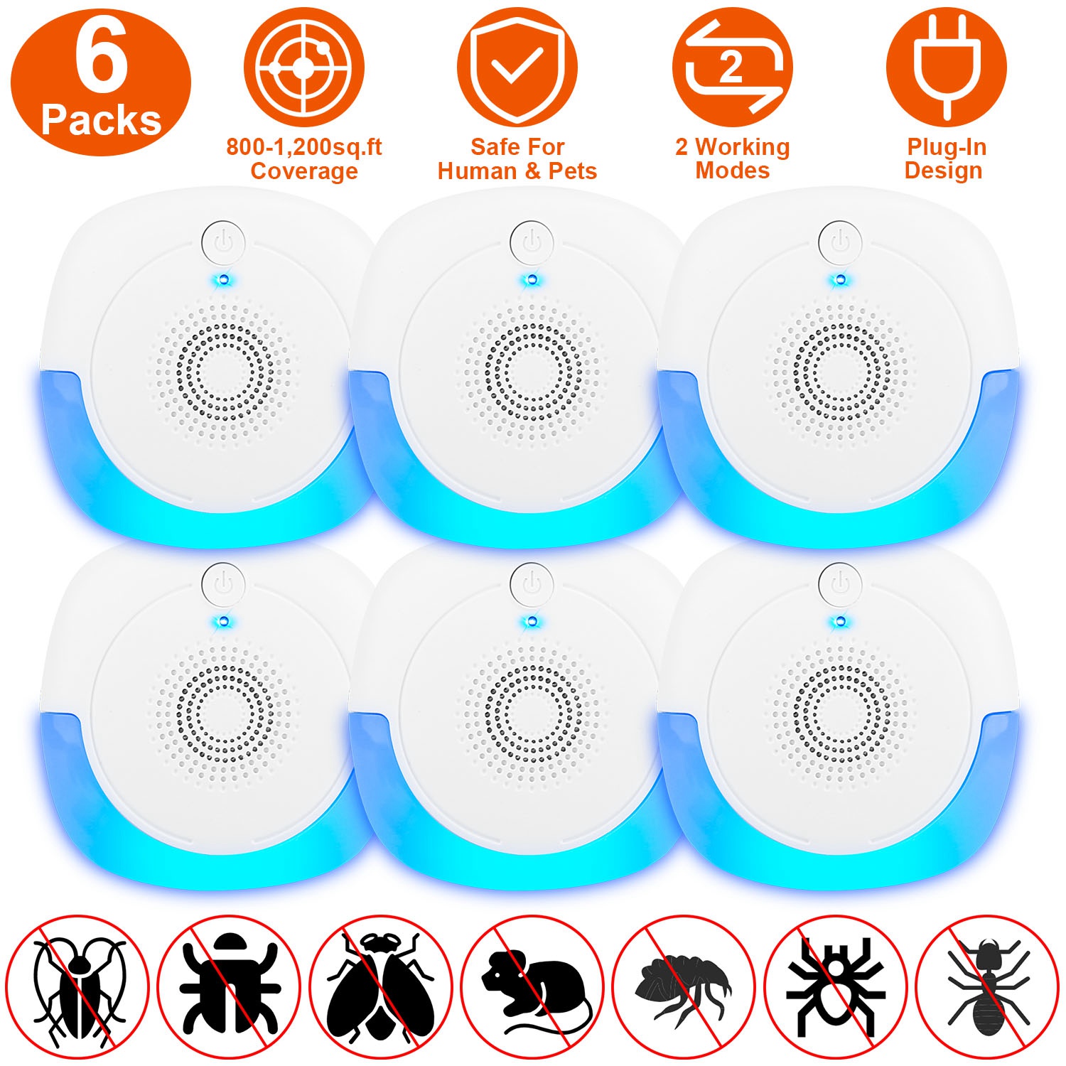 Product Type: 6 Packs Ultrasonic Pest Repellers
