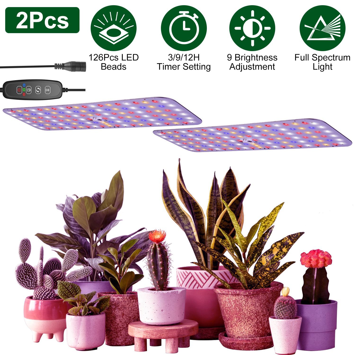 2Pcs Ultra-Thin LED Grow Lights for Indoor Plants with 126Pcs LEDs Full Spectrum Under Cabinet Plant Growing Light Panel 3/9/12H Timer 9 Dimmable Leve