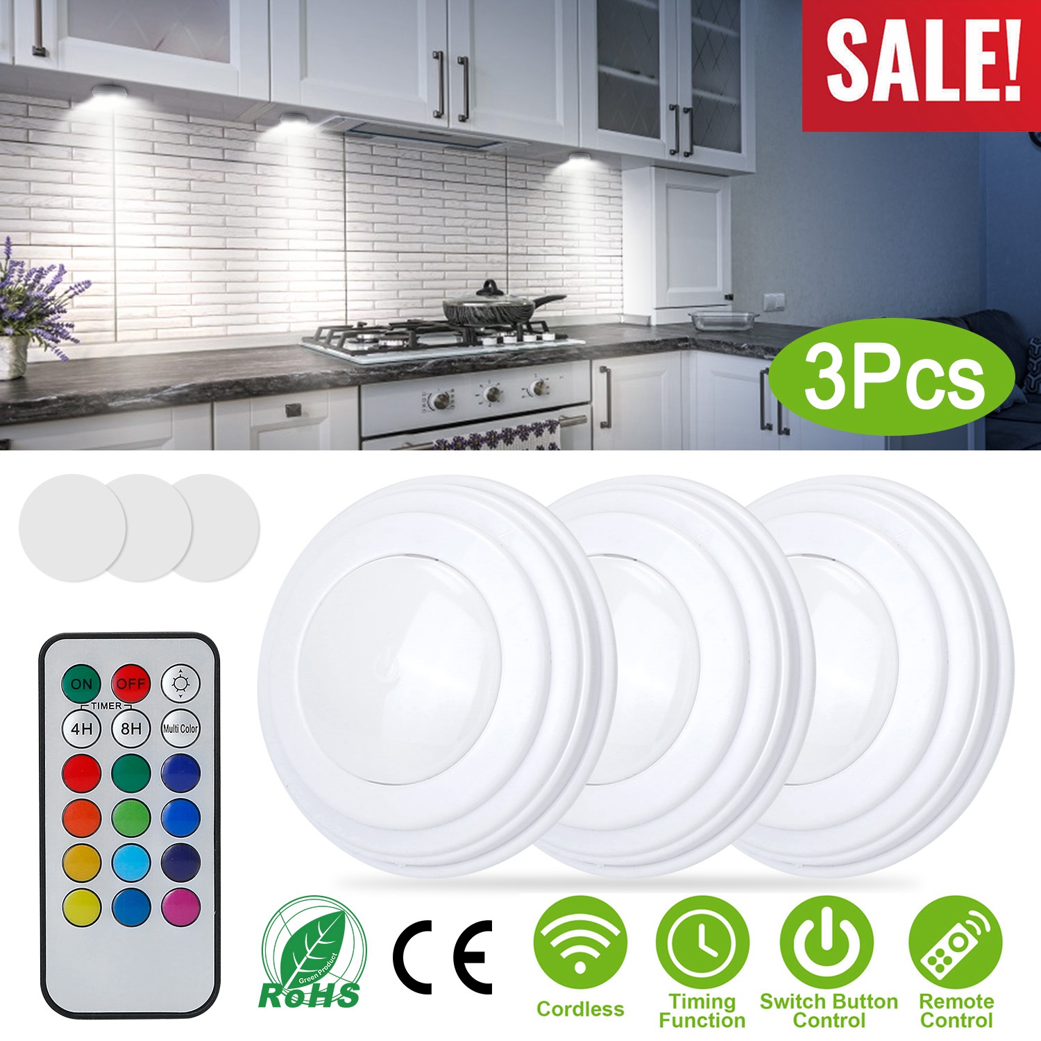 Home > 3Pcs RGB Cabinet Lights Remote Control Under Closet Stick On Lamp Multi Color LED Light Light w/ 4/8Hrs Timer