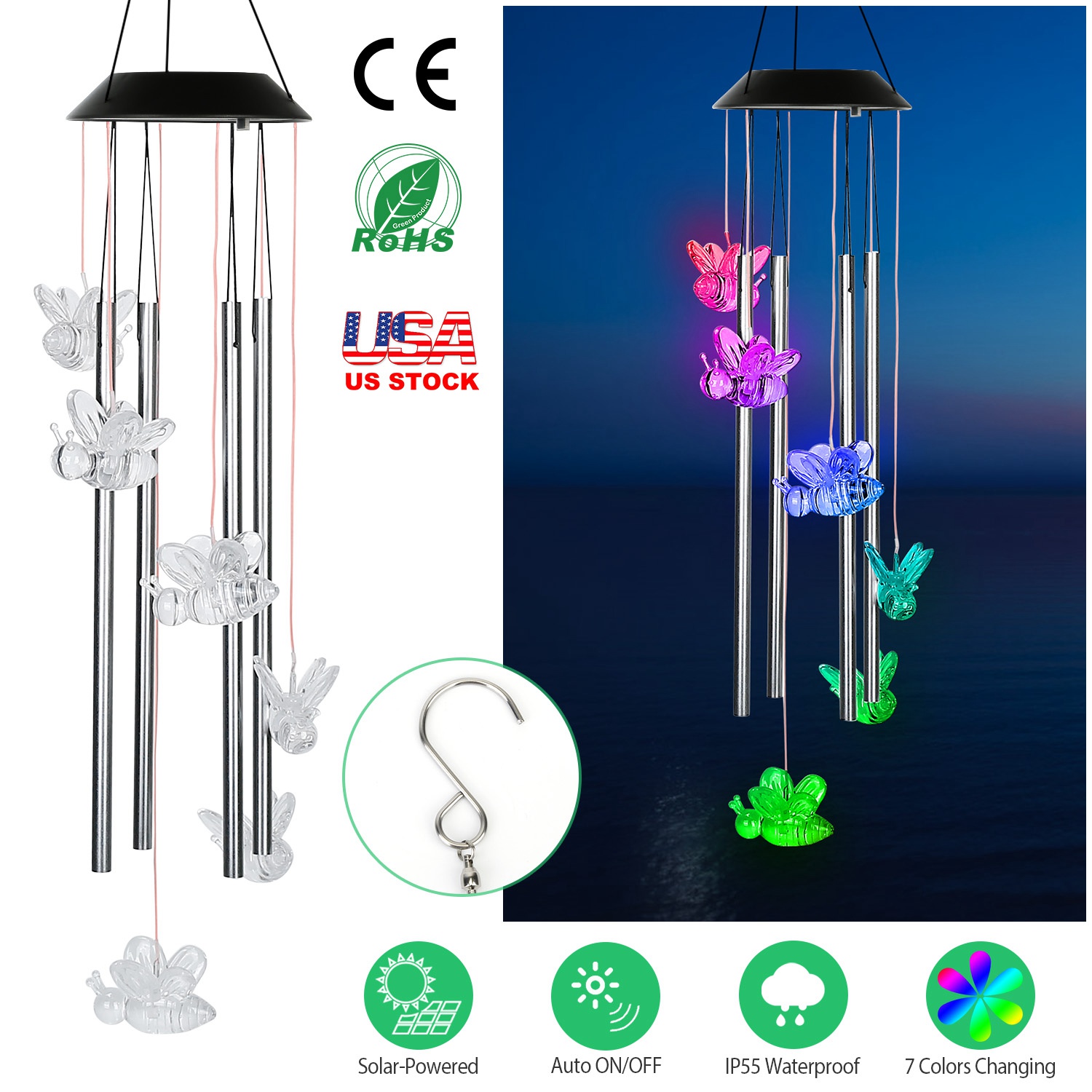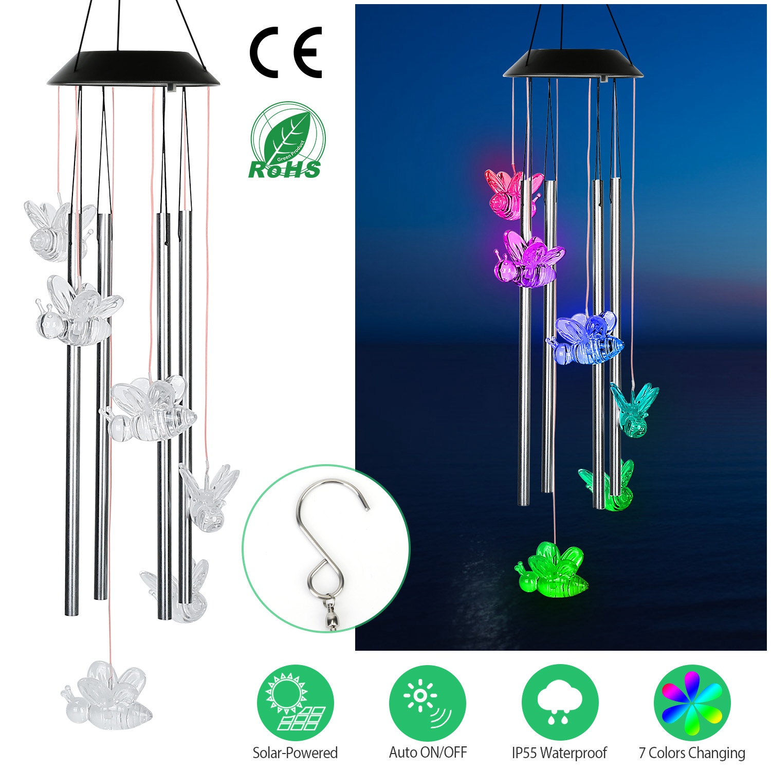 Product Type: Solar Powered Bee Wind Chimes Light