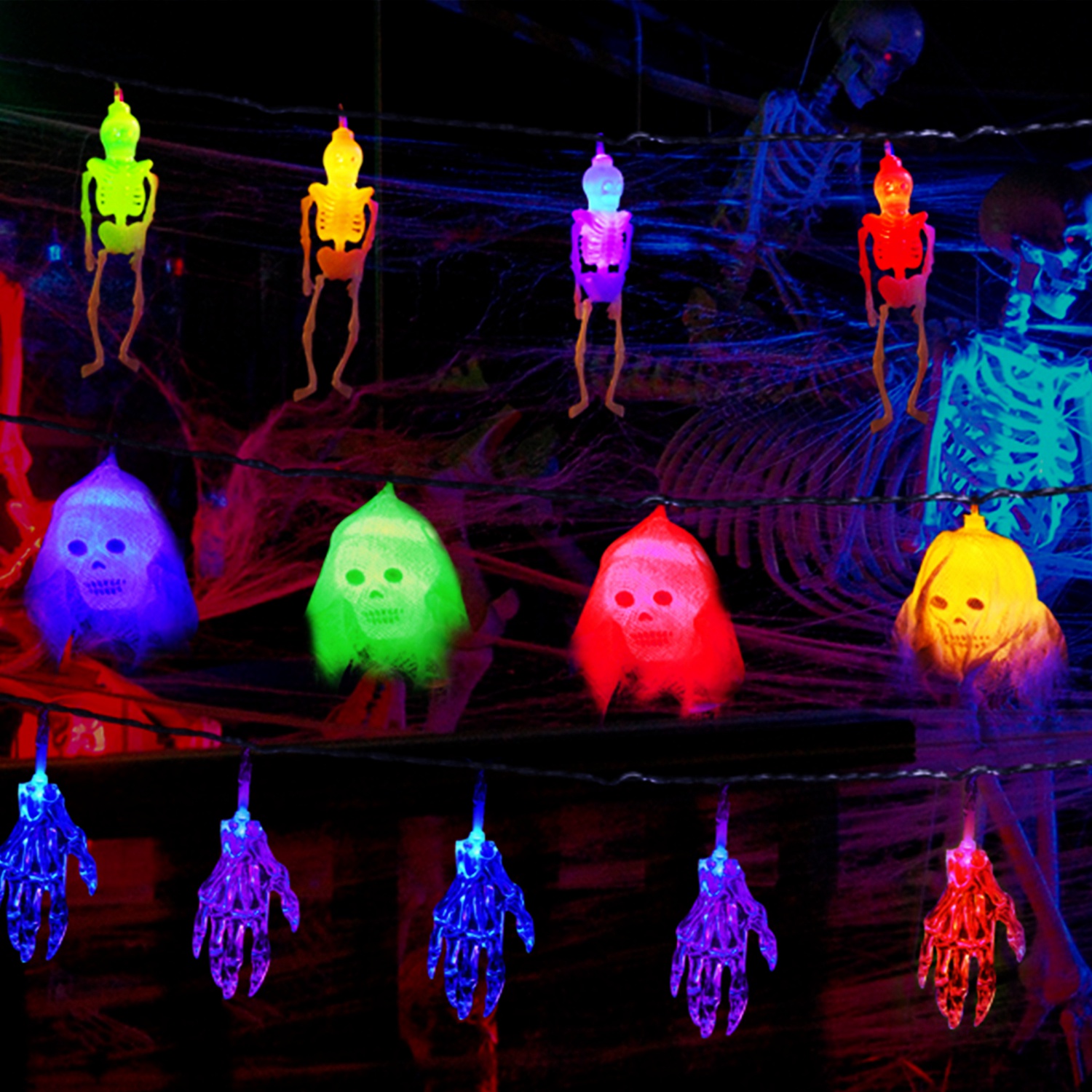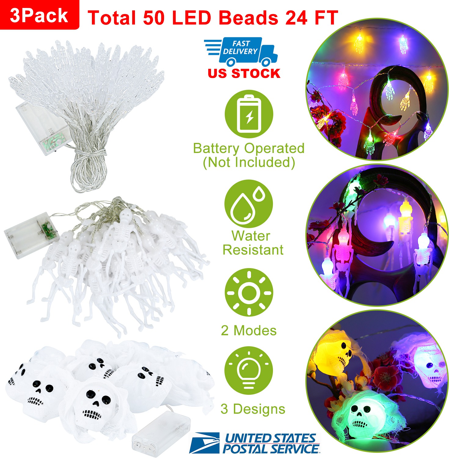 Home > 3Pcs Halloween Light Decorations Total 50 LEDs 24ft Halloween String Lights Colorful 3D Skeleton Ghost String Lights Gauze Skull String Lights Spooky