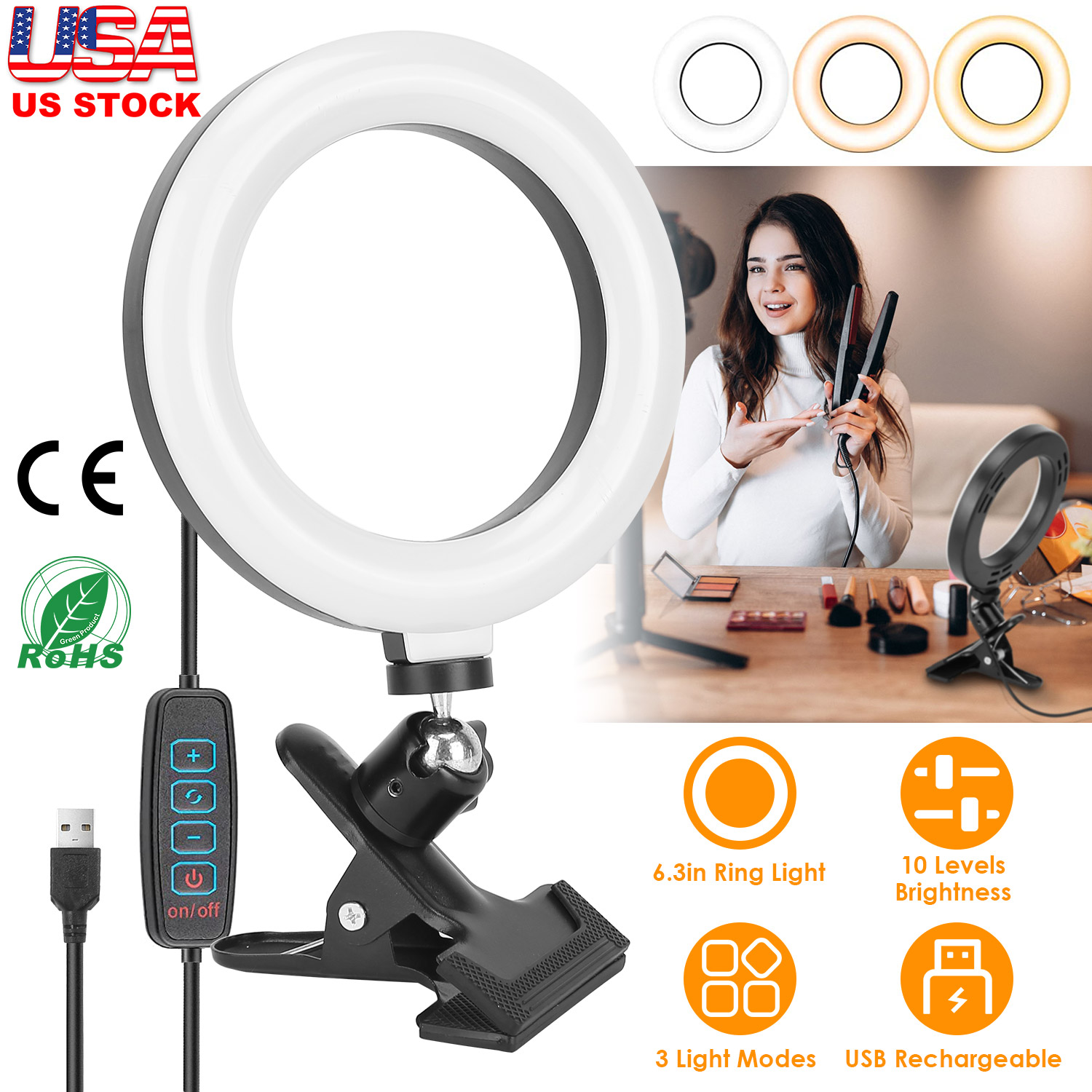 6.3in LED Ring Light for Laptop with Clip USB Powered Selfie Desk Dimmable Light 3 Light Modes Ring Fill Light for Live Stream Make up Photography