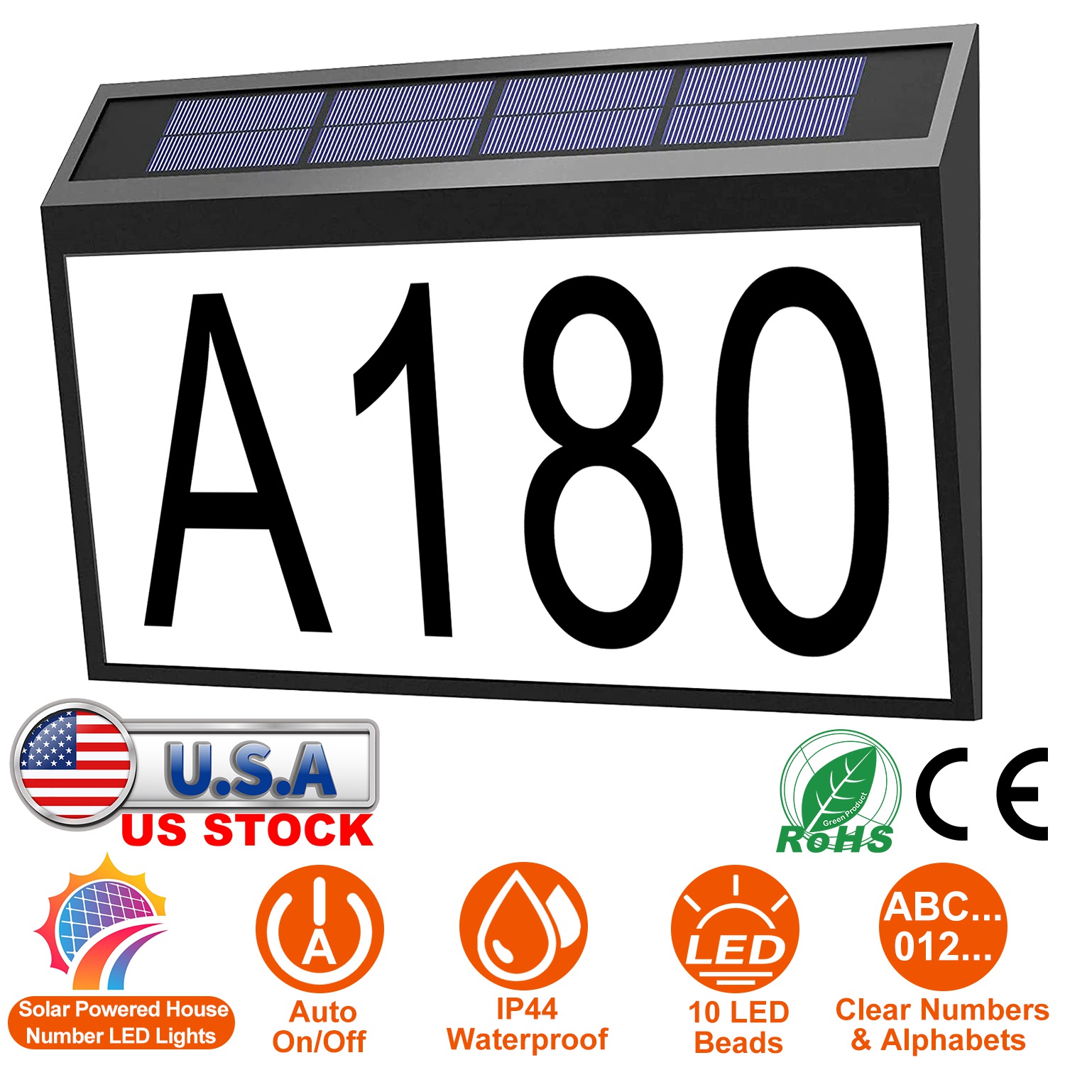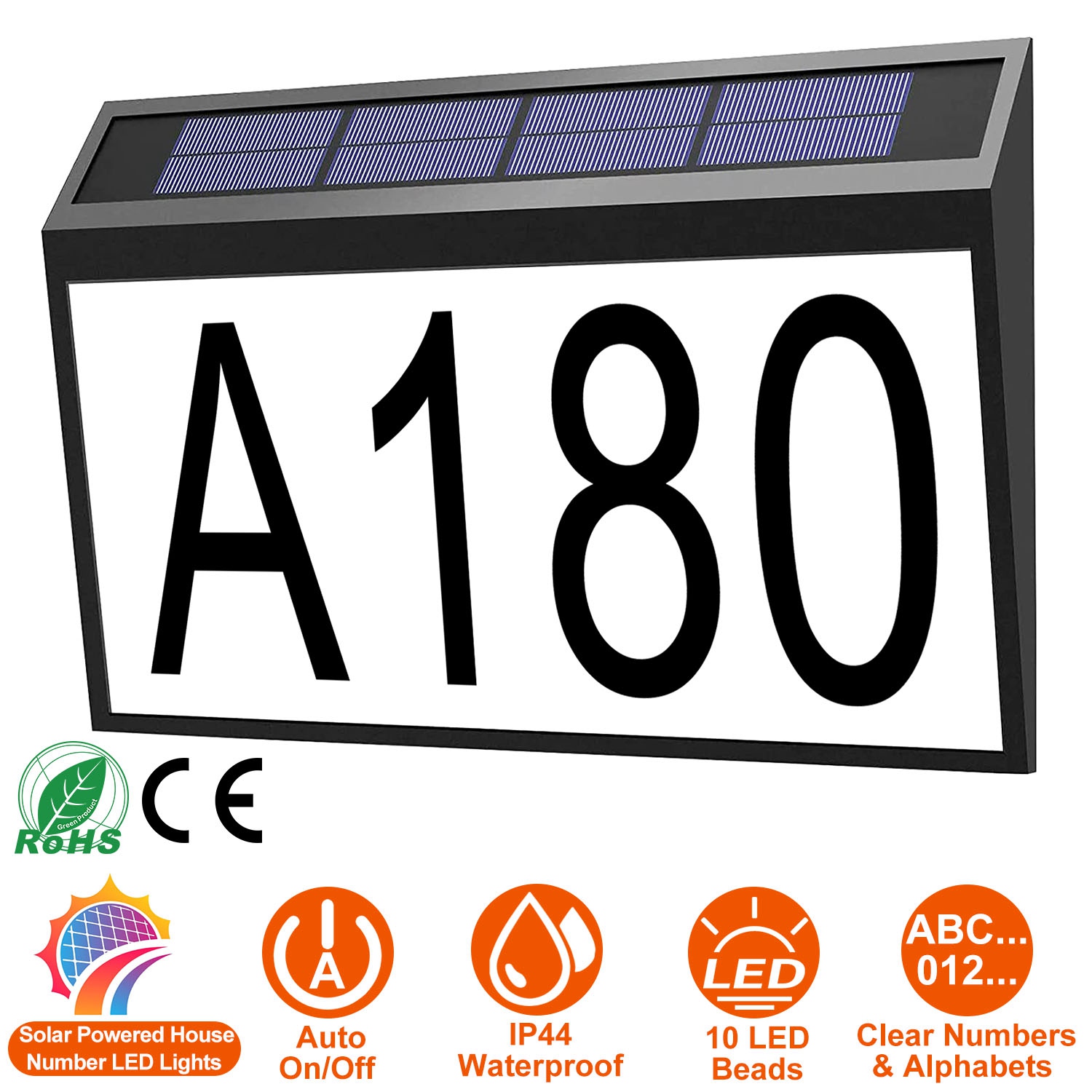Home > Solar Powered House Numbers LED Light Dusk To Dawn Address Plaque Sign Waterproof Wall Mount Number Plate Lamp for House Yard Garden Street Mailbox