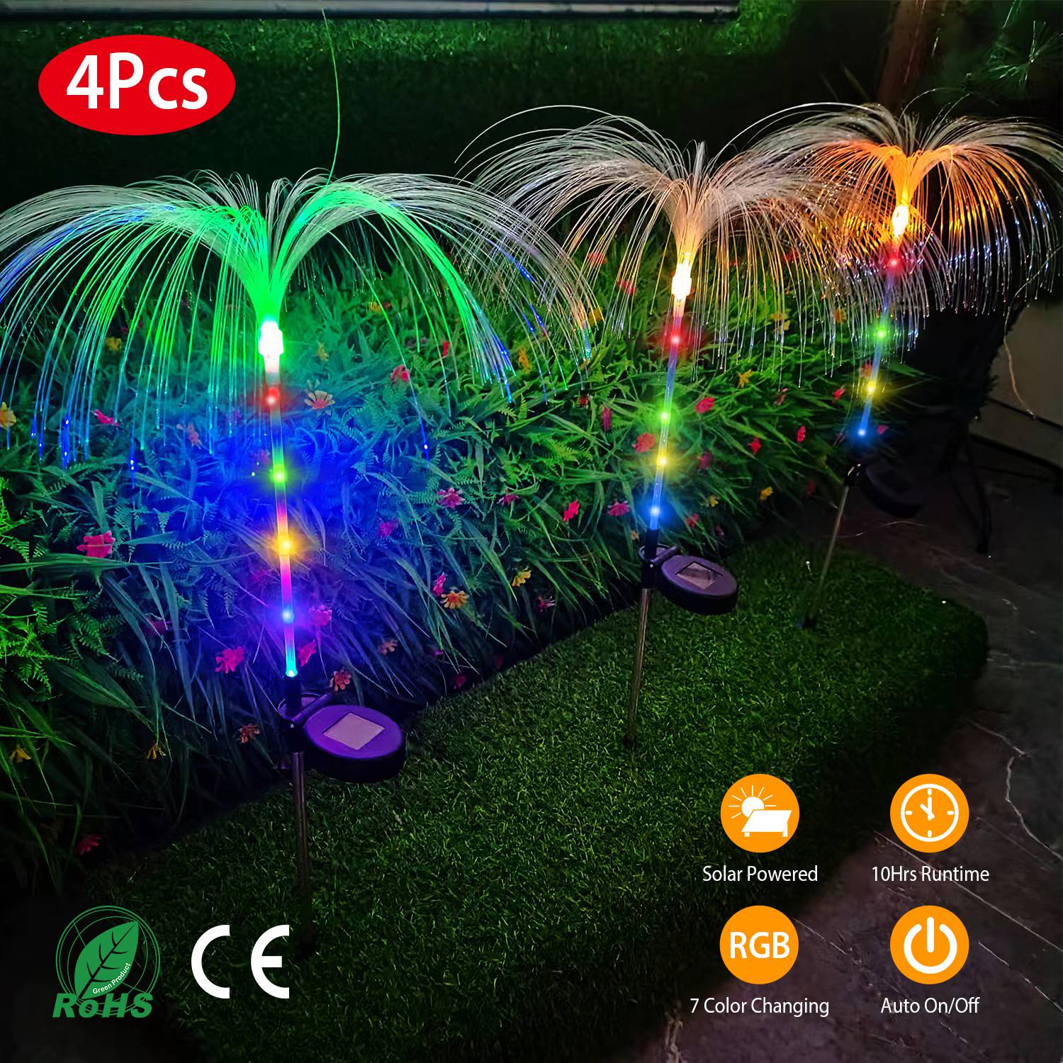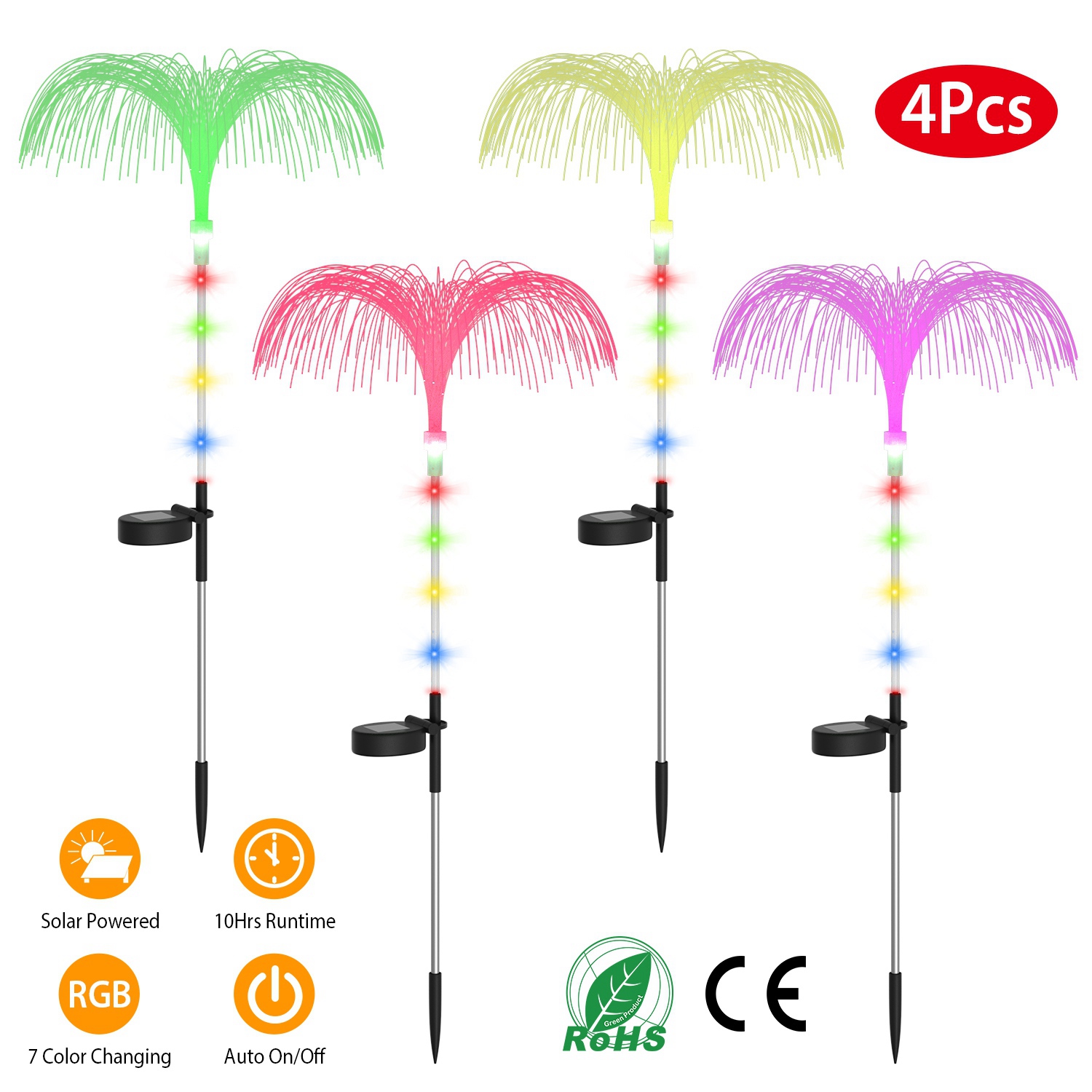 4Pcs Solar Powered Jellyfish Lights IP44 Waterproof Decorative Outdoor Lamps 7 Color Changing Night Light
