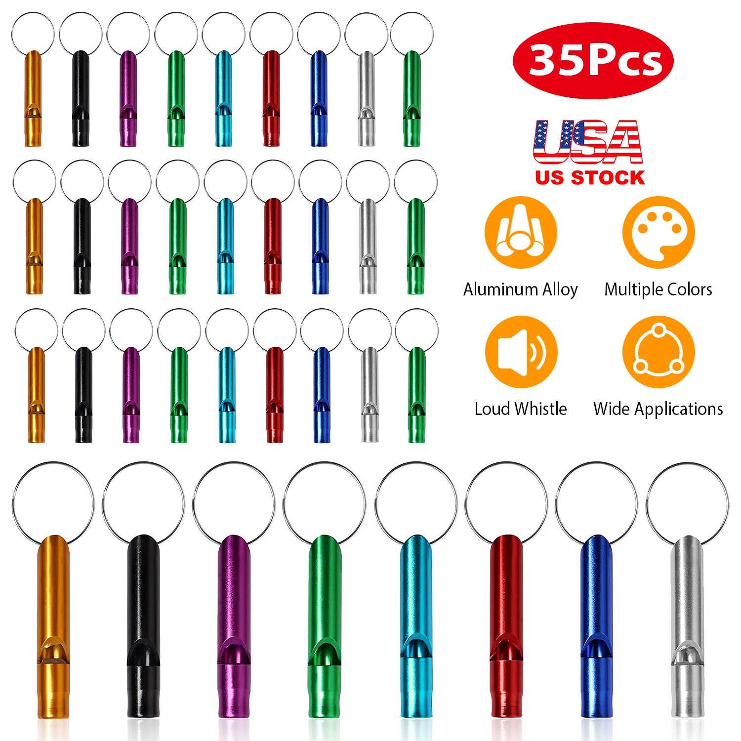 35Pcs Emergency Whistles Extra Loud Aluminum Alloy Whistle with Key Chain Ring for Camping Hiking Hunting Outdoor Sports Emergency Situations