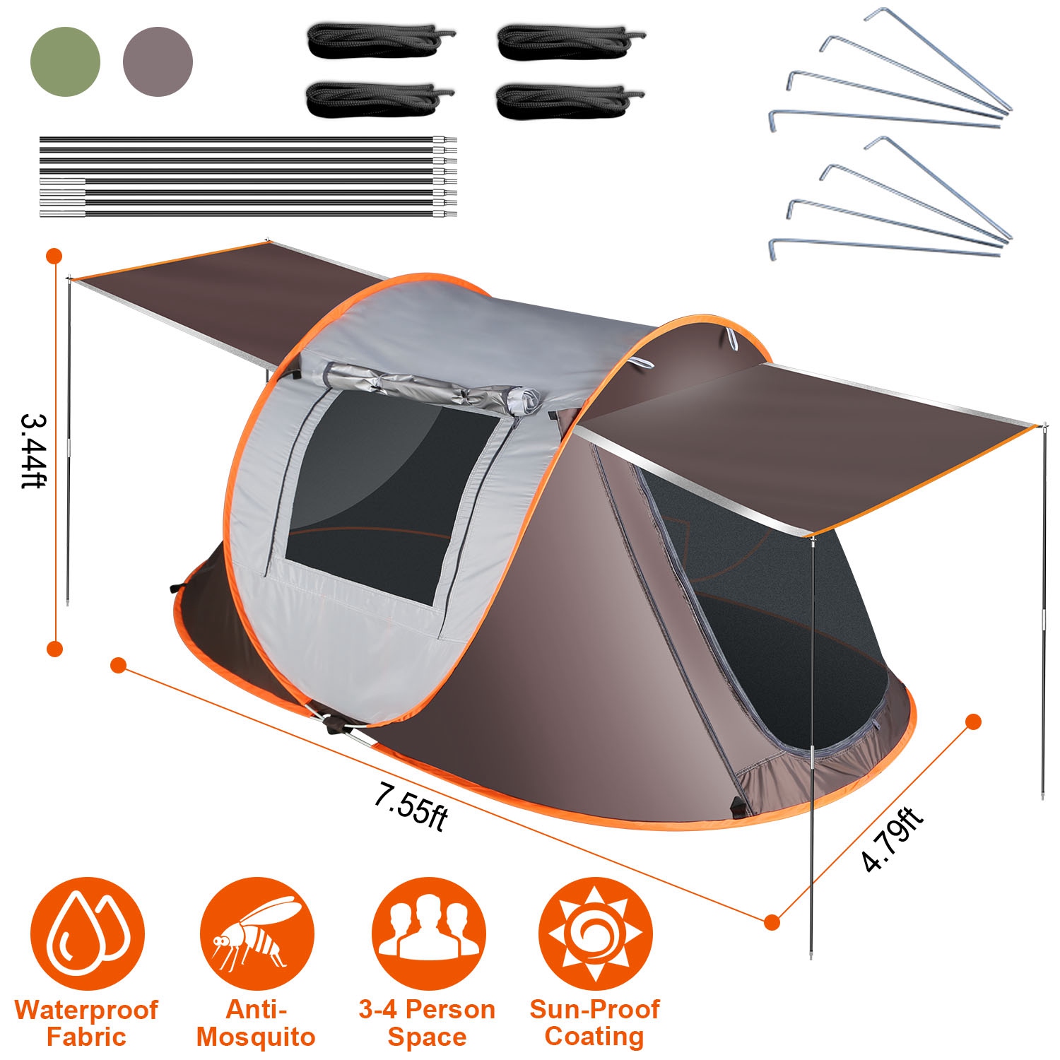 Home > 3-4 Person Pop Up Tent Automatic Setup Camping Tent Waterproof Instantåtup Tent with 4 Tent Poles 2 Mosquito Net Windows Carrying Bag for Hiking Cli